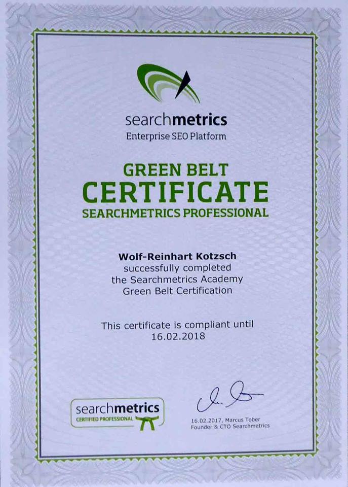 Searchmetrics Professional Green Belt Certificate, Berlin - 2010/2011